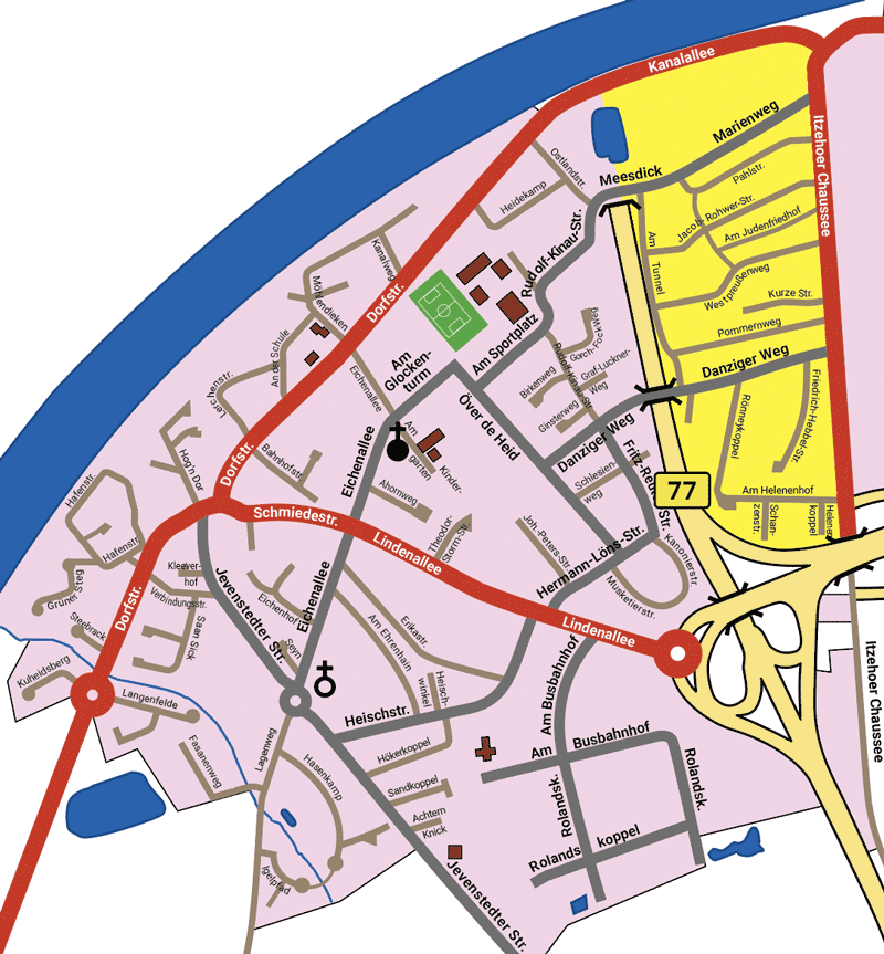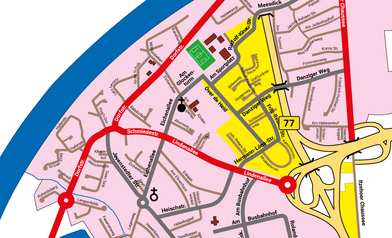 Durch die Fortführung der Bebauungspläne und die Erweiterung des Gewerbegebiets werden Wohnen, Handel und Gewerbe in Westerrönfeld weiter gestärkt.